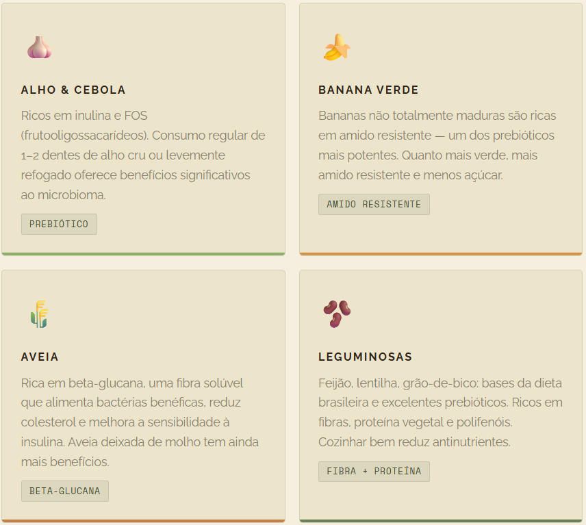 A boa notícia: nutrir o intestino não exige suplementos caros ou ingredientes exóticos. A ciência aponta consistentemente para alimentos que já existem há séculos — e que culturas com os menores índices de doenças inflamatórias consomem há gerações.