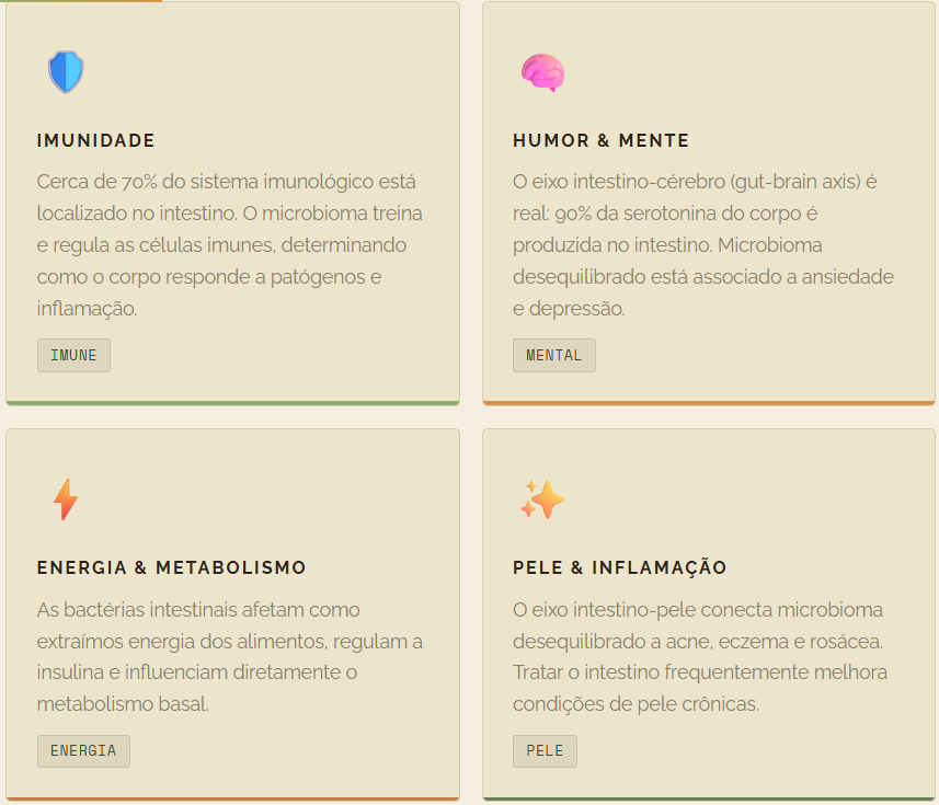 A razão é o microbioma intestinal: o ecossistema de trilhões de microrganismos — bactérias, fungos, vírus e outros — que habitam o trato gastrointestinal. Durante décadas, a ciência tratou esses habitantes como coadjuvantes. Hoje, sabemos que eles são protagonistas centrais da nossa saúde.